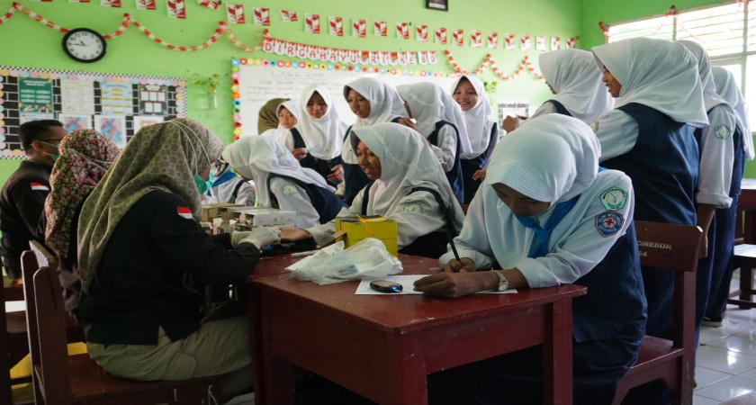 Dukung Kesehatan Remaja, PMR MTsN 8 Cirebon Laksanakan Cek Darah dan Imunisasi HPV